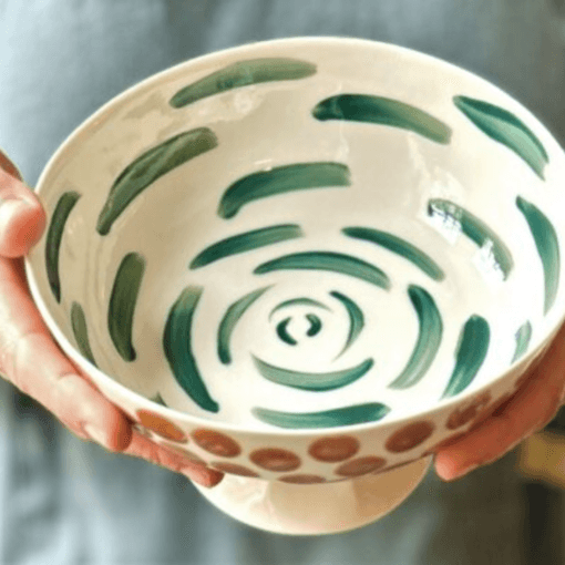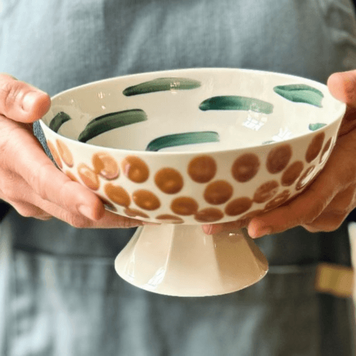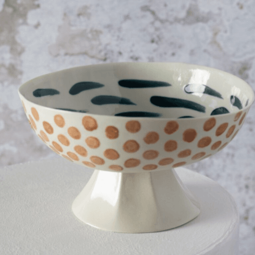 Discover the unique artistry of our Dots&Stripes Medium Footed Bowl, a standout piece in our Dots & Stripes Collection.