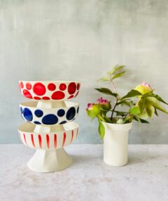 Discover the charm of our Dots&Stripes Footed Mini Bowl, a unique piece in our Dots & Stripes Collection.
