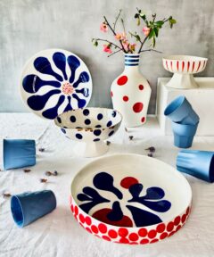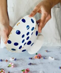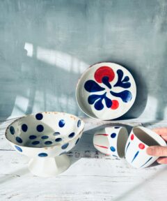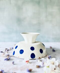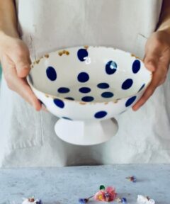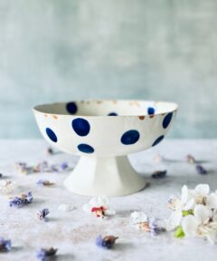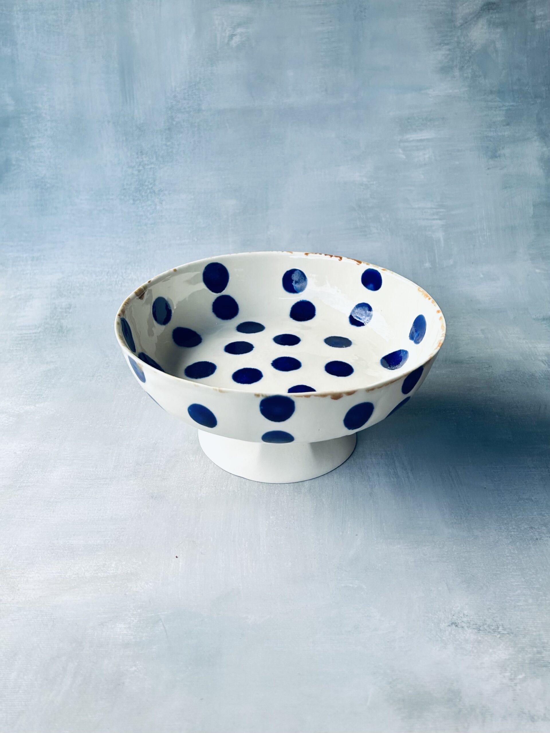 Discover the magic of craftsmanship with our Dots & Stripes Medium Footed Bowl, a masterpiece in the realm of serve wares.