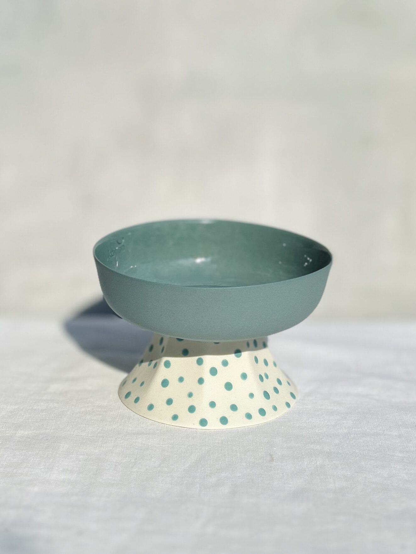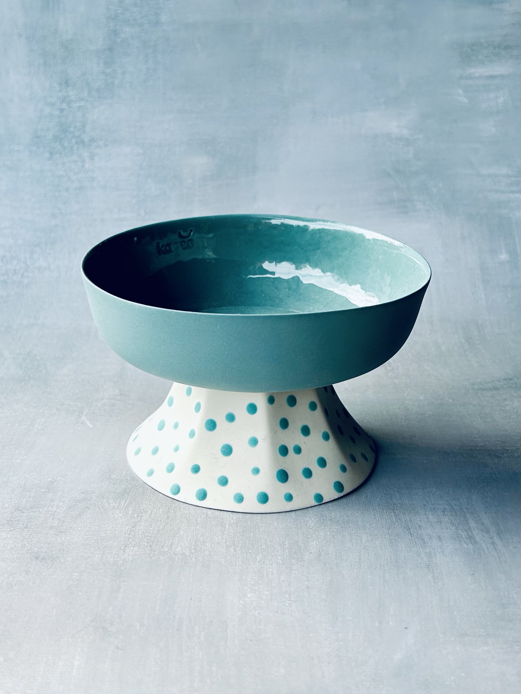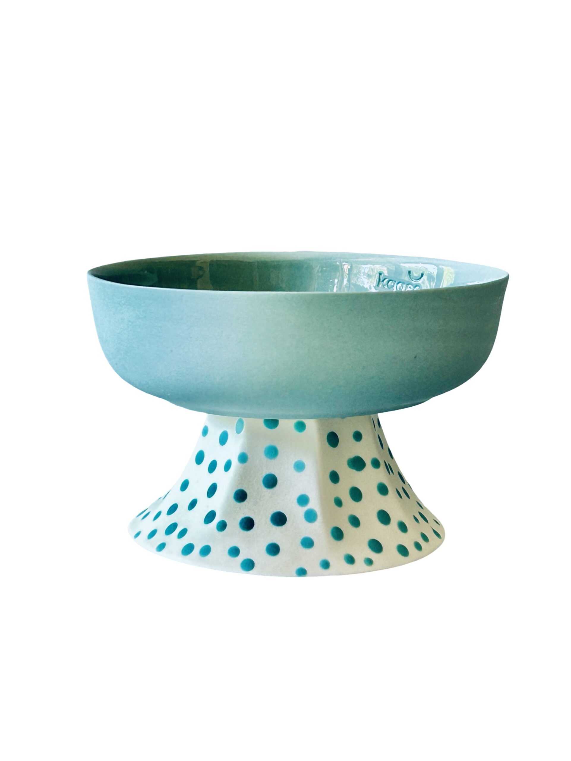 A porcelain footed serving bowl from the Macaron Collection. Handmade Limoges porcelain with delicate translucent walls. Perfect for snacks, salads and decorative display.
